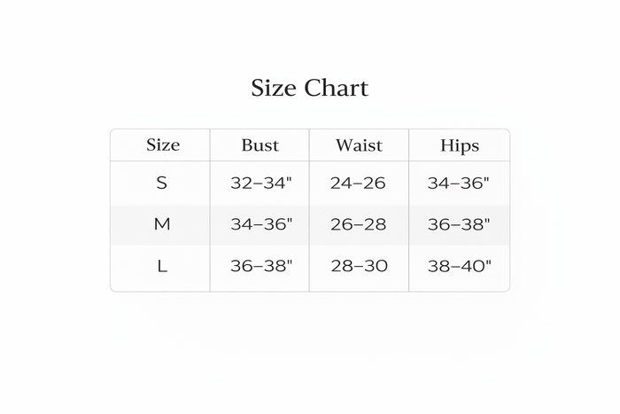 Model is approximately 5'7" tall and wearing size Small. Bust: 32–34" | Waist: 24–26" | Hips: 34–36"